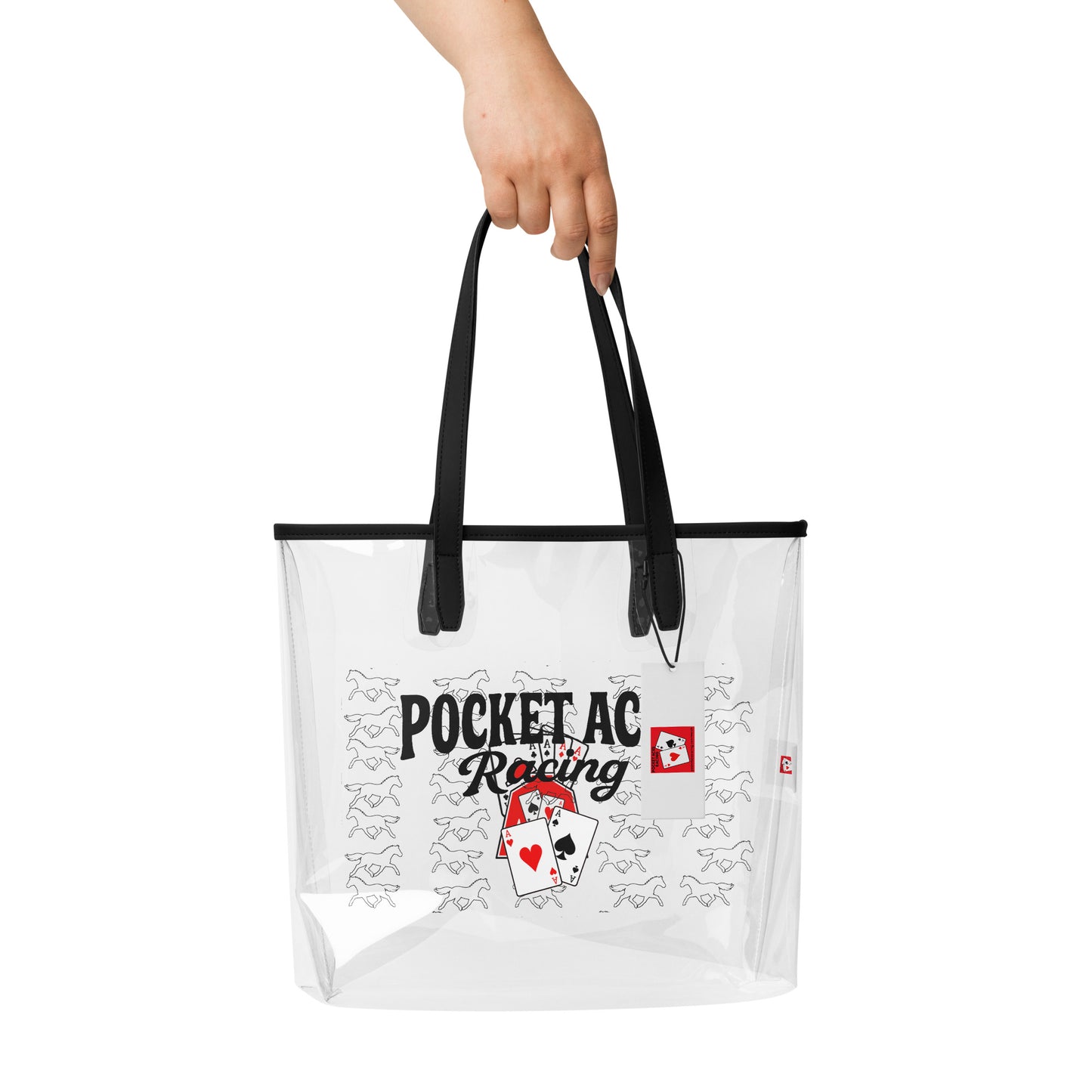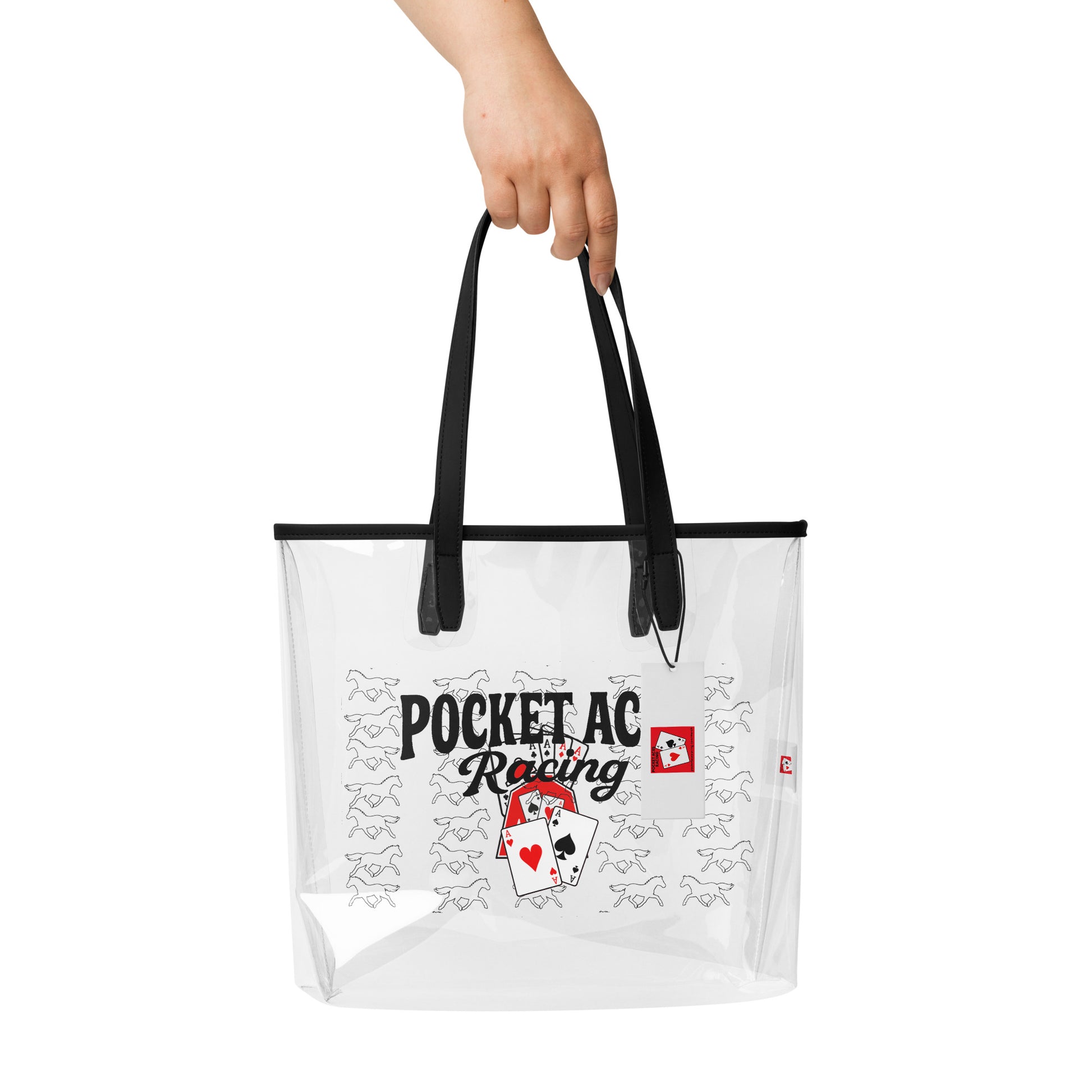 Clear, chic, track-ready, and stadium-compliant, this tote is built for everyday hauling. With its sleek transparent design and sturdy build, it’s perfect for race days, concerts, beach trips, or anywhere else you need a stadium-approved carryall. Durable, practical, and polished—it’s the bag that always gets through the gate.