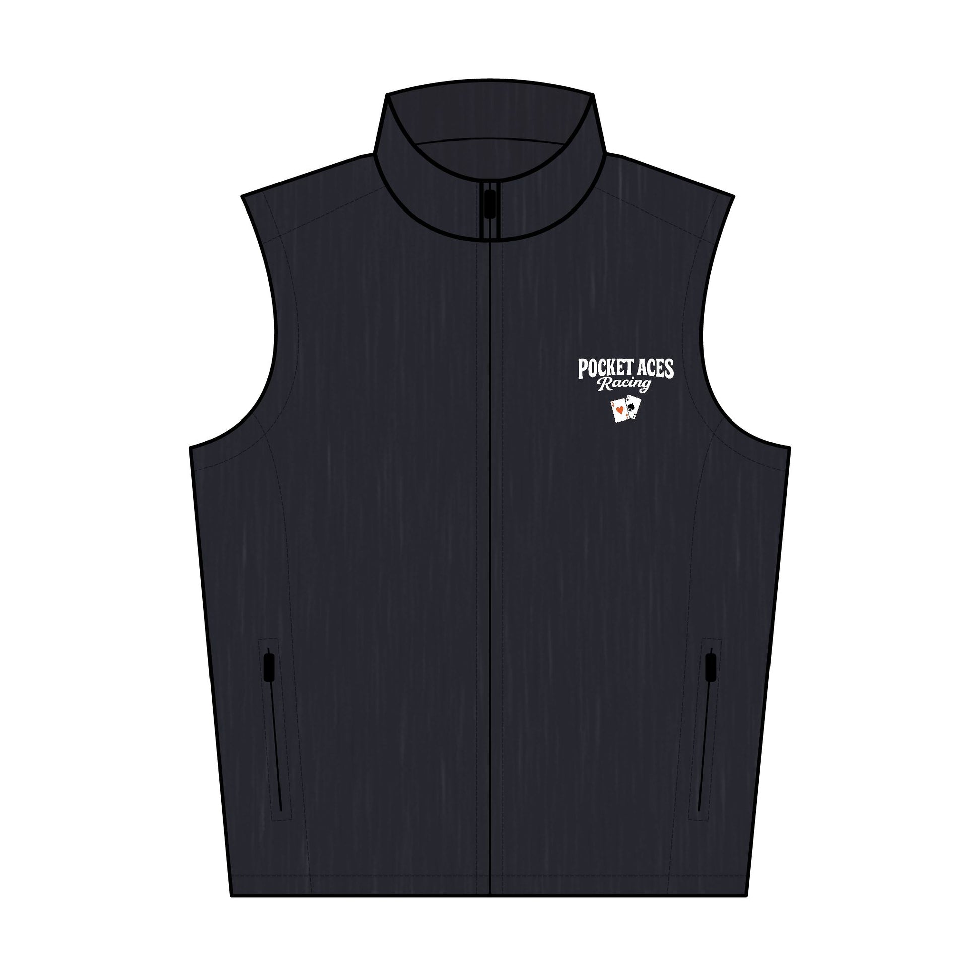 Keep your core warm and protected from the elements in this versatile, budget-friendly soft shell vest — finished with premium Pocket Aces Racing embroidery for a polished look at the track or around town. Built for cool mornings at the track and long afternoons in the paddock, this soft-shell vest keeps your core warm, blocks the wind, and still moves easy when you’re on the go.