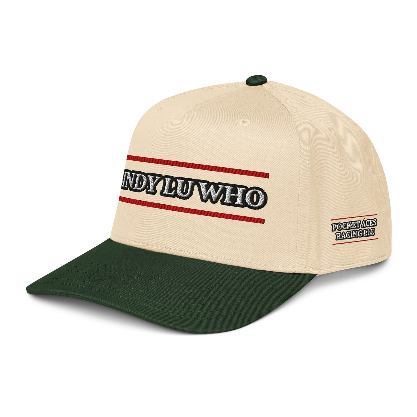 Rep the horse closest to your heart with the Stable Selections 5 Panel Cap, embroidered with original Pocket Aces detail. The structured front panel makes every name in our stable stand out, while the mid-profile fit and adjustable snap closure keep you comfortable all day. A slightly curved visor adds a classic touch, and the matching fabric undervisor and sweatband finish the look with polish. Built for style, fit, and partnership pride—this cap is ready for the track and beyond.